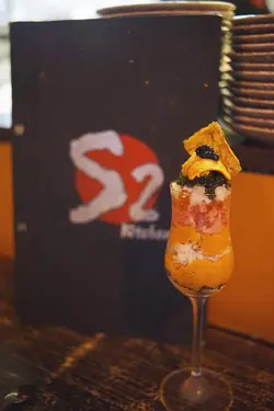 【創意上禮日式Fusion菜】 HinKiFoodie等級32017-10-30110 瀏覽 關注 S2 Kitchen店主樂師傅熱愛創新,餐牌裡十居其九都是充滿日式風味的Fusion菜! 招牌海膽杯除了主角海膽之外,其他食材也毫不遜色!黑魚子粒粒透潤亮澤; 味甘香潤的拖羅蓉,入口綿嫩。再隔一層海膽,有半透的白蝦肉。 最底以日本新鮮海帶盛起,微微鹹香作清膩,整個海膽杯吃起來鮮美甘甜清潤豐腴!進化版十層海膽杯$398 採用北海道海膽打成碎粒混入雪糕,而雪糕同樣採用北海道牛乳手打而成, 海膽份量足料,每一口都充滿海膽粒,口感非常新奇!海膽雪榚$68以上食評乃用戶個人意見 , 並不代表OpenRice之觀點。2分享【創意上禮日式Fusion菜】 S2 Kitchen https://s.openrice.com/QrbT0kqui00檢舉 張貼 評分5味道3環境5服務5衛生3抵食推介美食進化版十層海膽杯$398海膽雪榚$68用餐日期2017-10-17用餐途徑堂食人均消費$700