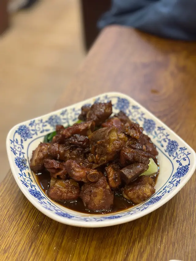 排骨份量十足,十多塊鋪滿小碟,帶軟骨的咬起來喀吱作響。但黑醋味不足,偏甜了些,倒像紅燒排骨。自己加了幾圈鎮江醋,才補足風味。