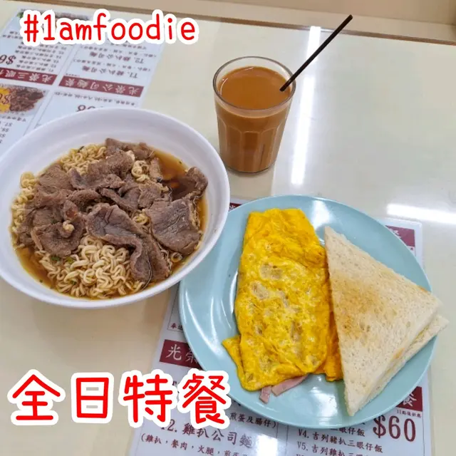 #1amfoodie #foodie #hkfoodie #thatfoodiething #hkfood #food #instafood #yummy #foodlover #delicious #foodies #tasty #globaleats #tastyfood #dessert #foodpics #followforfollowback #love #eat #1am屯門區 #屯門 #光榮冰室 #全日特餐 #鮮牛肉湯意粉 #出前一丁 #火腿奄列 #牛油方包 #奶油多 #熱奶茶 #西多士 #1am1266 #1ambackup