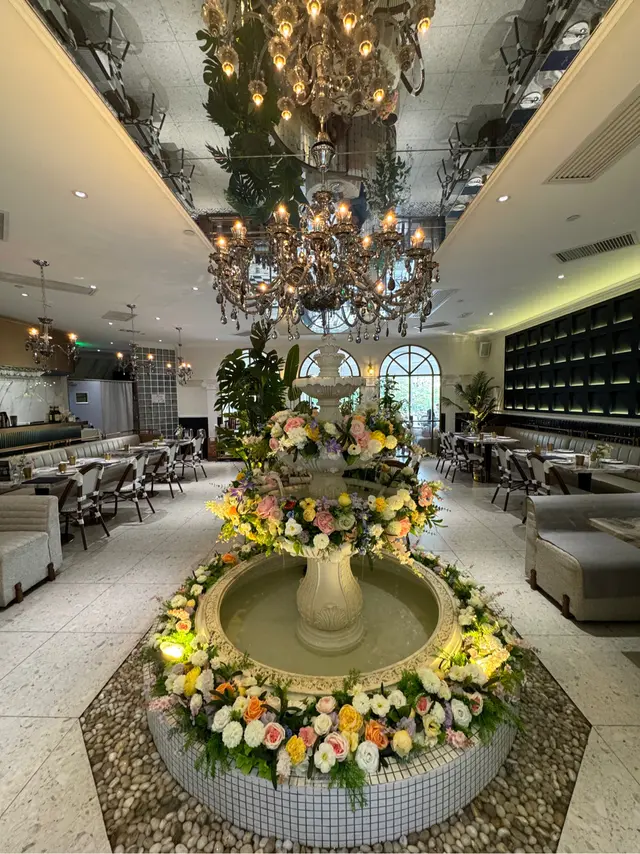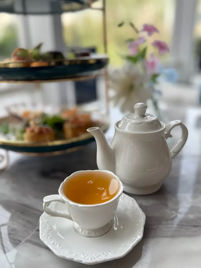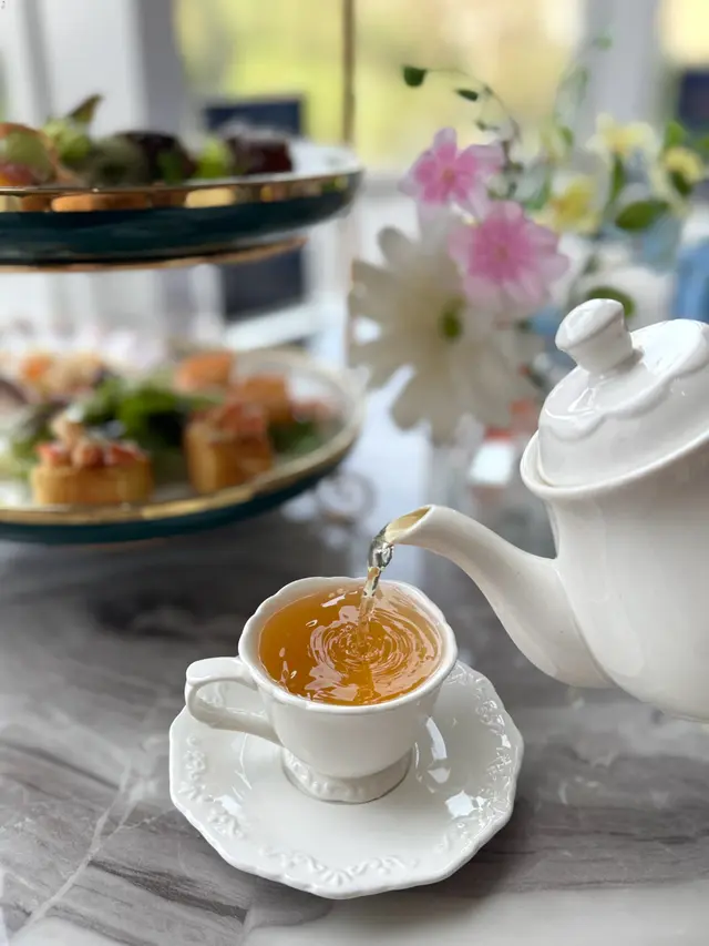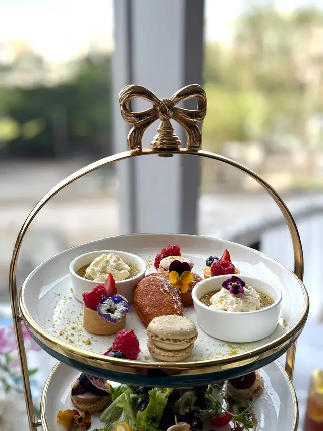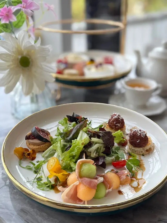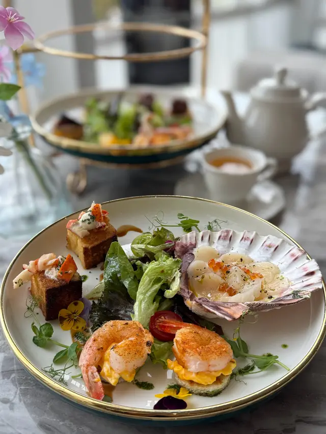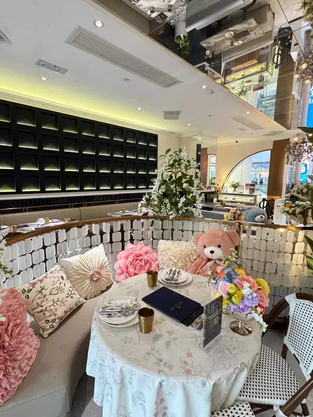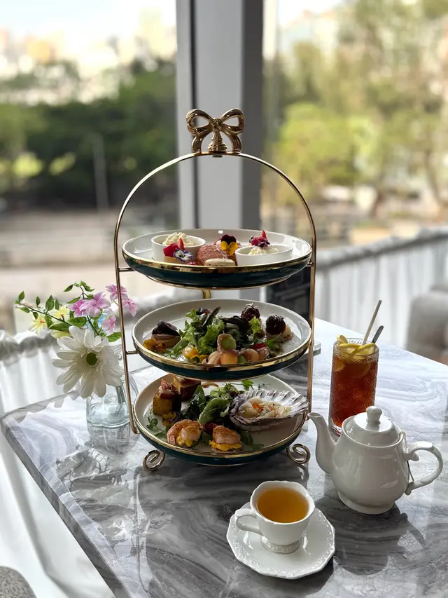 餐廳裝潢以歐陸宮廷風格為主,精緻仿巴黎凱旋門嘅浮雕圓拱門,門口設置一座法式許願池比人打卡,另外仲有古典水晶吊燈、花卉佈置、天花鏡面、法式藤椅、黑白格仔地板等,好優雅。餐廳內設有落地玻璃,有日光照射,景觀開揚,舒適闊落。餐廳內更投影播放永恆女神柯德莉夏萍嘅電影,好經典。今次點咗ROYAL TEA SET,可以一邊享受Afternoon Tea,一邊望住維多利亞公園,感受法式休閒同埋氛圍。