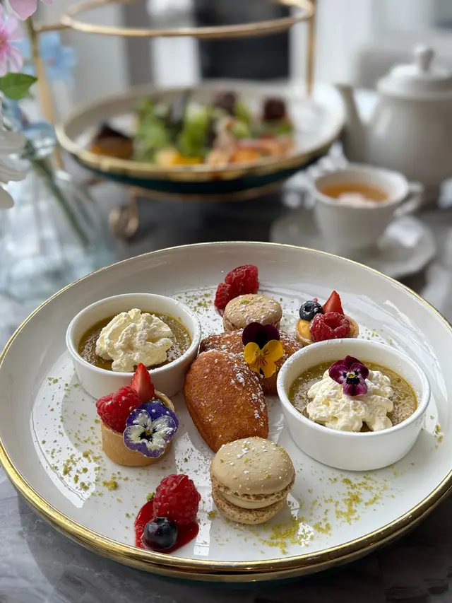 開心果焦糖燉蛋,口感細膩順滑,開心果味濃郁;迷你鮮果撻有酸甜清新嘅士多啤梨同埋藍莓,撻底口感酥脆;瑪德蓮貝殼蛋糕,蛋糕以貝殼形嘅外表,蛋糕香氣四溢,入口蓬鬆,帶有濃郁嘅奶油味道;七彩馬卡龍,外酥內軟,夾有香甜果醬,口感層次豐富。
