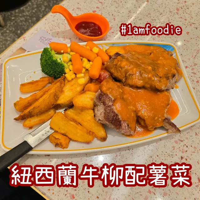 #1amfoodie #foodie #hkfoodie #thatfoodiething #hkfood #food #instafood #yummy #foodlover #delicious #foodies #tasty #globaleats #tastyfood #dessert #foodpics #followforfollowback #love #eat #1am油尖旺區 #尖東 #尖沙咀 #花月冰室 #紐西蘭牛柳配薯菜 #中湯 #凍檸茶走甜 #奶油豬仔包 #1am1775 #1ambackup