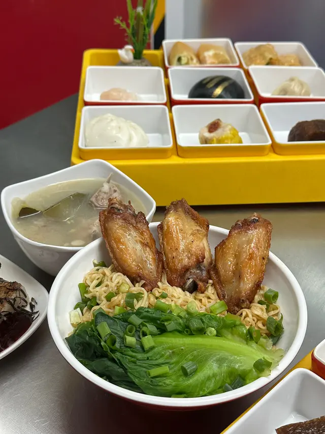 晚市重點推介✨ 雞翼鮮嫩多汁,搭配的香氣,撈麵則吸收了蔥油嘅香氣❣️