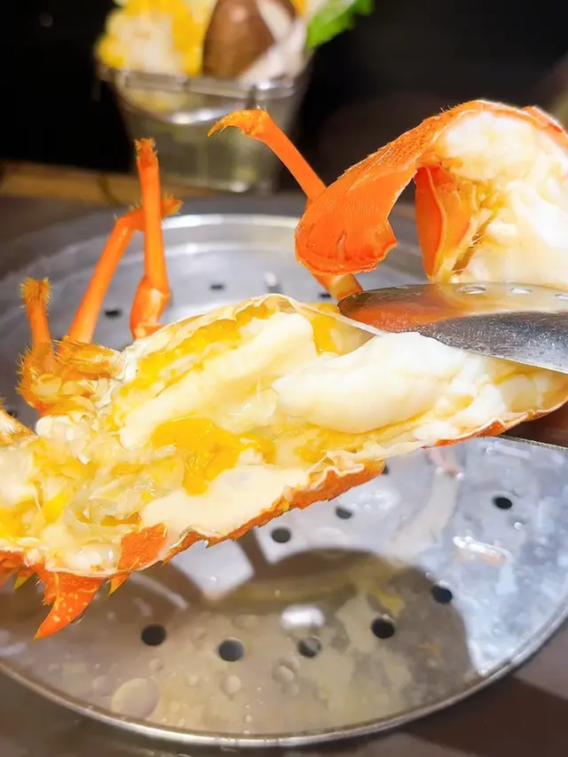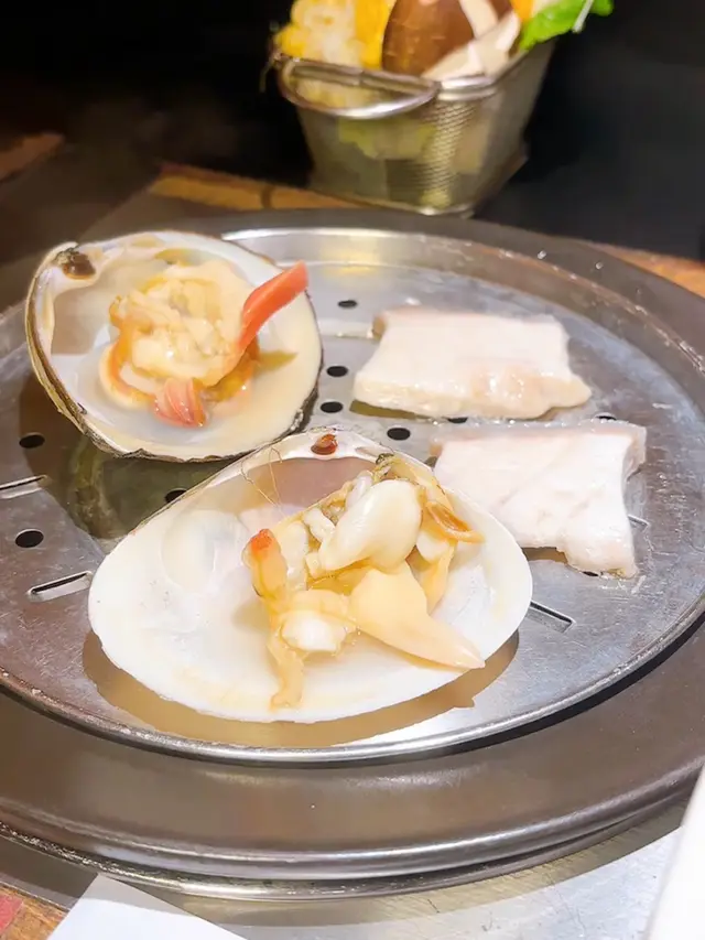 海鮮:白蜆、蝦、北寄貝、扁蟶子、鮑魚、元貝、鮮魚片、龍蝦(半隻)、蟹(半隻)/蟶子皇(1隻)