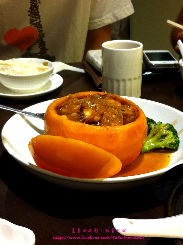 南瓜排骨盅 [$85]: 原個南瓜削皮蒸,連蓋也能全吃,排骨用蒜蓉豆豉炒過入味淋身,飽肚之選。