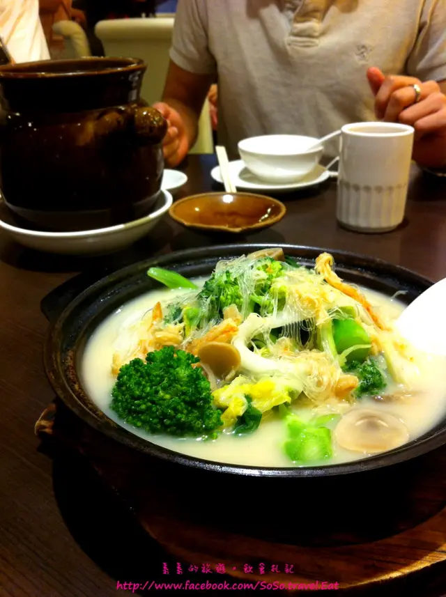 柱貝魚湯雜菜煲 [$52]: 魚湯不腥反而帶幾分瑤柱的咸香味,西蘭花、娃娃菜、白菜仔,當然少不了粉絲蝦乾,在其他帶濃獻汁和重口味的菜式,這個是本餐的清泉。