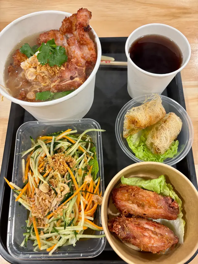 朋友則點了越南香茅豬扒湯河($55),厚腍又夠味,附送小食和飲品。他選了香茅雞翼和陳皮洛神花茶。洛神花茶酸香醒胃,喝起來不錯。