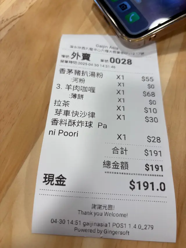 這間小店主打印度咖喱和越南菜。印度料理是由印度師傅掌廚,看到他現場煮奶茶、烤薄餅,感覺挺地道。我選了咖喱羊肉餐($68),白飯可以換薄餅,還加了$10點了一杯印度奶茶。咖喱味濃,羊肉煮得夠軟。