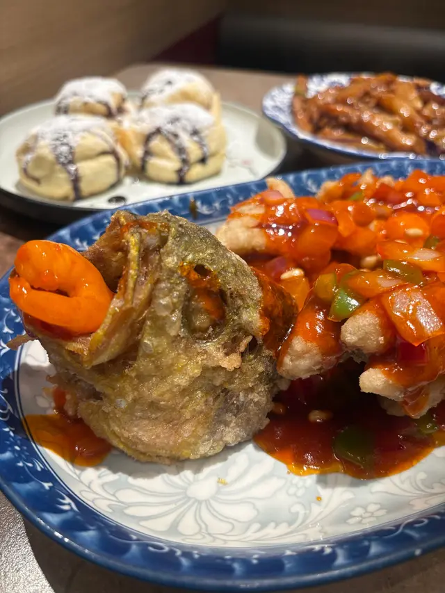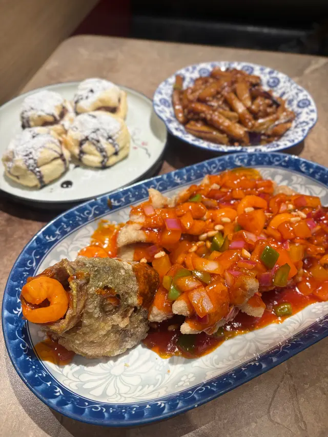 2. 松子大黃魚 呢道菜係今次嘅亮點!大黃魚炸得外脆內嫩,魚肉好滑,無咗晒魚腥味。上面嘅松子同醬汁好夾,甜甜酸酸,仲有松子嘅香脆口感,食落真是一個層次感好豐富嘅菜。份量略為細份咗啲,但質素高,值回票價。