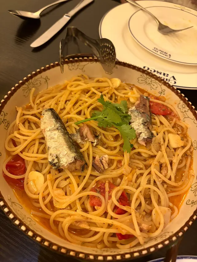 呢碟意粉真係誠意十足~一上枱就聞到香噴噴嘅蒜片同橄欖油香,仲見到滿滿嘅沙甸魚肉舖滿成個碟!意粉煮得剛剛好,彈牙有咬口,絕對唔係淋滋滋嗰種。