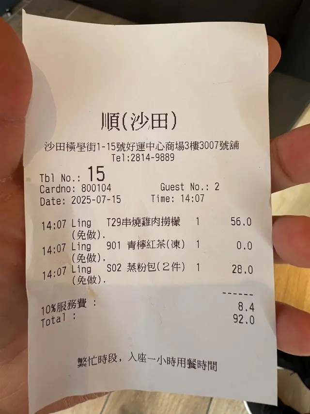下午茶😋,推介 Yi tsang等級42025-07-17555 瀏覽 關注 之前食過間餐廳, 2點剛剛开始有下午茶,價錢又唔貴,食物質景都唔錯, 今日再encore .餐廳環境衞生乾淨, 位置寬躺,座位舒適,職員有禮貌,上菜算快,整體感覺幾好, 等咗一陣就有位.串燒雞肉檬粉:有三大串串燒,即燒, 啖啖肉,檬粉份量算多,加埋個Sauce一齊食, 檬粉好入味,加埋青檸檬汁, 絕配蒸粉包: 下午茶餐另加$28, 抵食, 有二大件, 多餡, 皮薄,即叫即做, 咬落啖啖肉, 超滿足青檸紅茶:味道清新,用青檸代替普通檸檬,味道更突出1以上食評乃用戶個人意見 , 並不代表OpenRice之觀點。讚好分享下午茶😋,推介 順。越南牛肉粉 https://s.openrice.com/QrbT0TtykW0檢舉 張貼 評分5味道5環境5服務5衛生5抵食用餐日期2025-07-15等候時間5 分鐘 (堂食)用餐時段下午茶