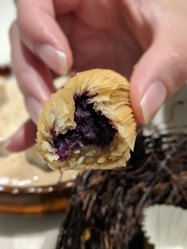 通常好看的東西,太部分味道一般,但這個天鵝酥卻是內外兼備,方才提到天鵝身體是紫薯酥,香酥軟糯,咬開是啖啖的紫薯,十分香甜