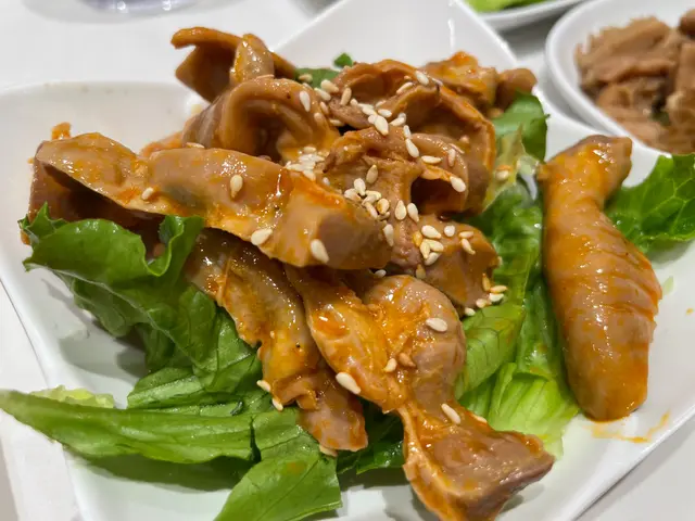這道菜口感酸辣可口,雲耳的脆爽與蒜香的味道完美融合,非常開胃。接下來是麻辣雞腎,
