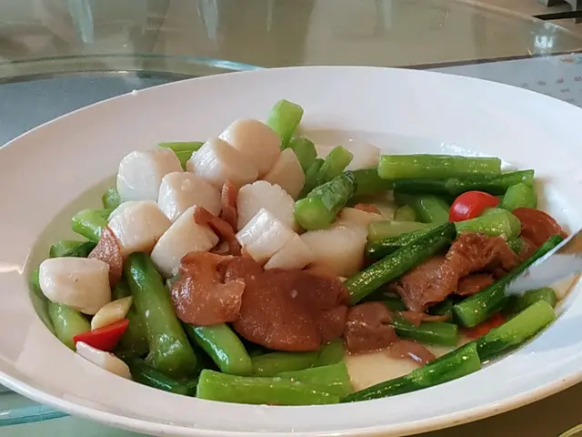 金華火腿鹹香惹味,竹笙可清洗乾淨一點,這個露筍比上一碟爽脆,輕微油膩。