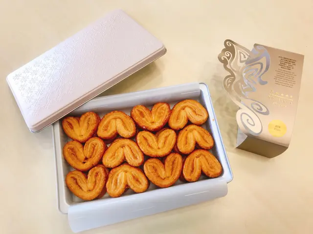 外面個盒就真係夠晒靚啦,係一個鐵罐,仲可以之後留返使用,令一面每塊嘅蝴蝶酥都係呈心心形,每年嘅顏色呈金黃色,一打開個盒,其實就已經聞到好香嘅蝴蝶酥餅味道,已經非常吸引