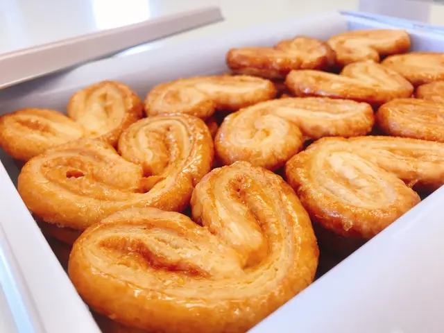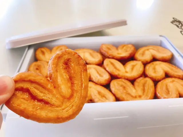 拎上手,佢呢個蝴蝶酥餅其實都算大塊,因為其實一啖比較難食得晒,都要將個心心咬開半邊食,發現佢個酥餅非常鬆脆,上面仲有一層甜甜地嘅光油,咬落去感覺都好鬆化,而且非常香味,確實做得好出色
