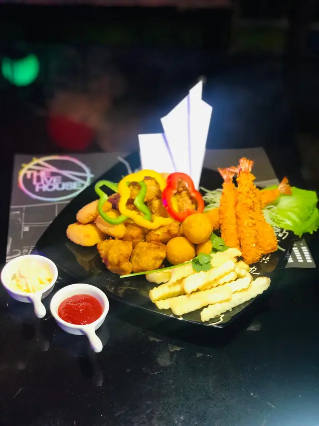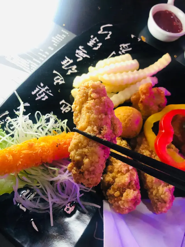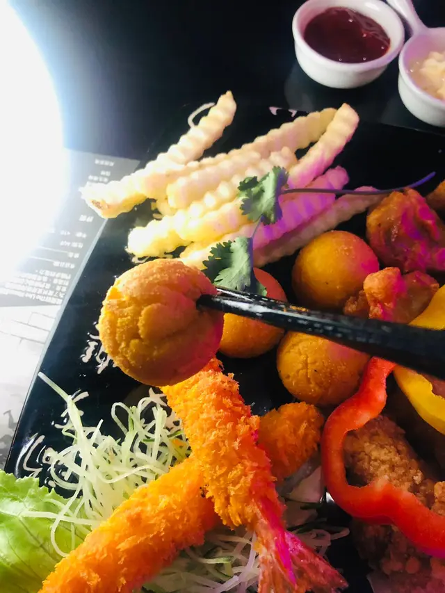 佢有佢掟鏢,我哋就叫嘢食嘢飲,想開心share食就叫咗個炸物大拼盤;蝦蝦蝦,有我最鍾意嘅炸蝦,其他仲有紫薯、雞翼、雞件、薯餅⋯全部熱辣辣即炸,唔係渣流灘
