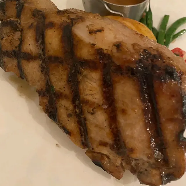 大大塊既黑豚扒 厚肉0脂肪 肉質彈牙 典型既炭燒風味☺️配上薯仔1隻 勁飽肚🤗