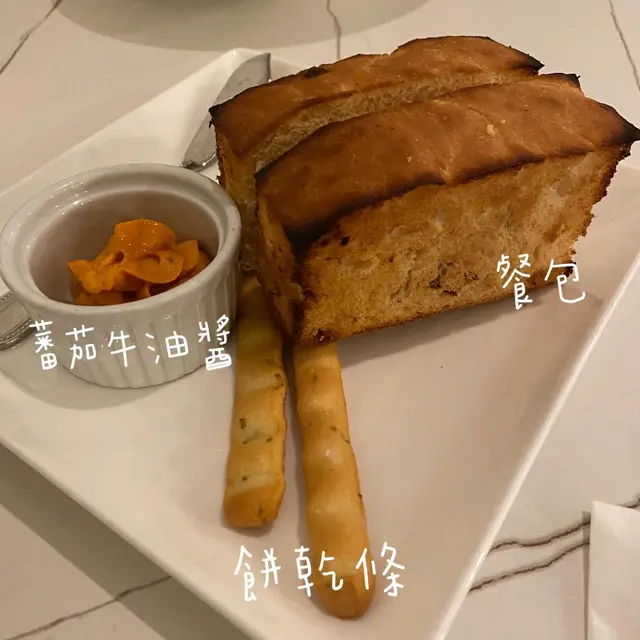 餐包撈埋啖啖香滑既椰菜花湯  餅乾條酥脆可口 健康美味 易入口😋個人唔係好鍾意撈醬食包 但蕃茄牛油醬 真係比較少見獨特 有小驚喜👏