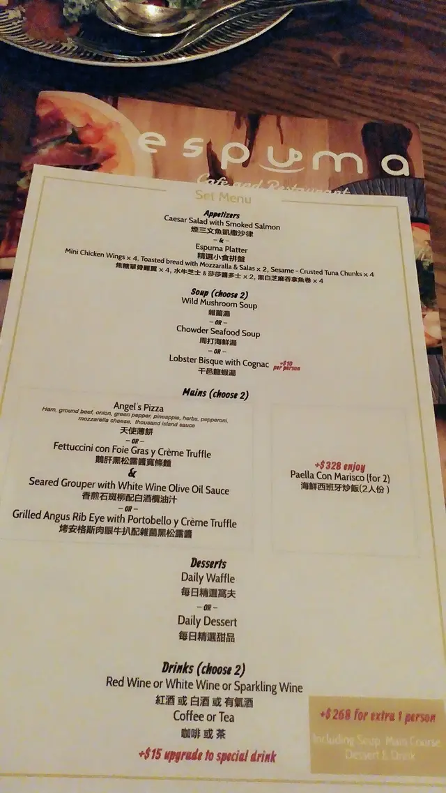上到去拎個餐牌睇下,588 兩個人,好似貴左少少。但睇真啲其實有好多野食,兩款頭盤兩碗湯兩款主菜兩杯飲品仲包甜品!好唔好食要試過先知。
