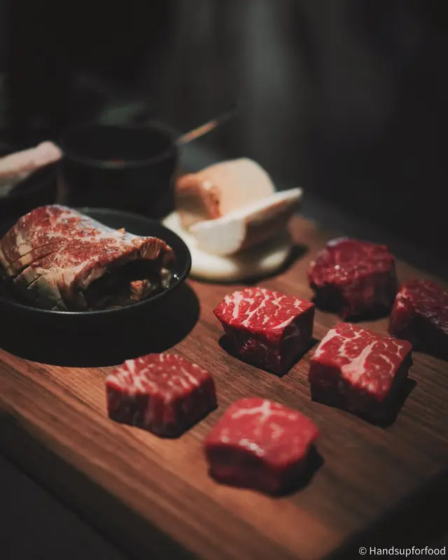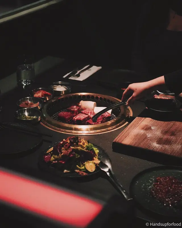 中環型格燒肉。 krisfiona等級42023-05-0539 瀏覽 關注 終於試一試這間位於中環的新型格燒肉店看到乾熟成牛肉櫃放著大大份熟成牛肉已很興奮~個人覺得牛肉質素很可以但店員燒肉的技巧尚有進步空間有些燒得偏乾了些,可惜了這麼好的牛肉不過有些則是完美的medium-rare用泡菜夾著吃,確有一番風味又美味~特別喜歡用上封門柳的牛肉他他落滿大量即場刨的巴馬臣芝士加入白松露油和日本雞蛋黃再拌勻入口味道很豐富,肉味濃郁,不錯不錯值得一提的是雞尾酒味道好好!顏色又美會喝酒的記得點一杯試試看~以上食評乃用戶個人意見 , 並不代表OpenRice之觀點。讚好分享中環型格燒肉。 JJJ Korean Steakhouse & Bar https://s.openrice.com/QrbT0PcP900檢舉 張貼 評分4味道4環境3服務4衛生3抵食用餐途徑堂食