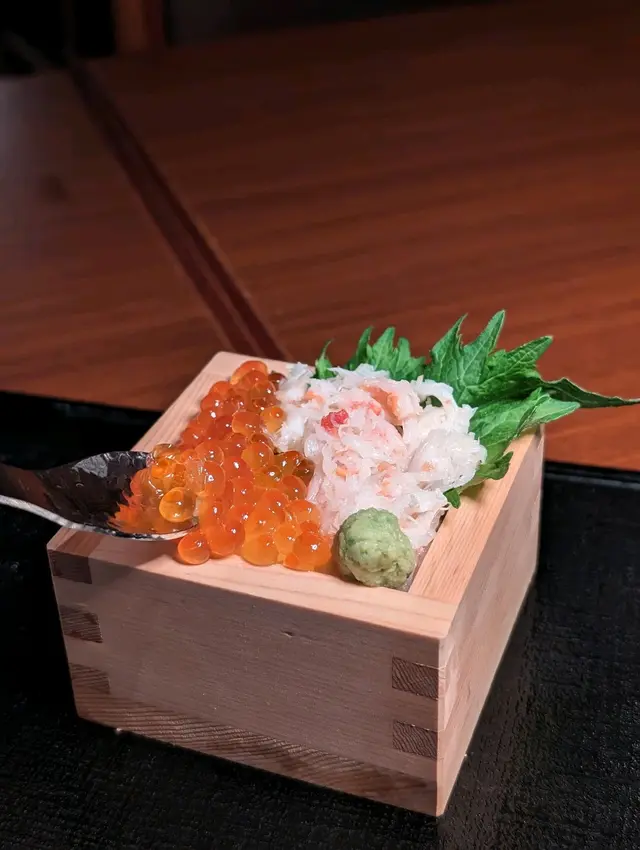 這份套餐同時配上枡壽司,以鮮甜蟹肉同新鮮三文魚籽配上壽司飯,嘗試到蟹肉的不同配搭🤩