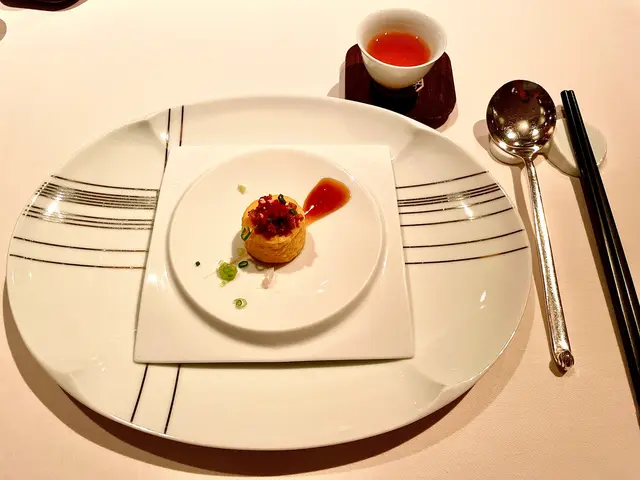 傳統中菜廳,除左秘制叉燒之外,亦有依道令人欲罷不能嘅炸饟鮮蟹蓋,侍應亦有熱心介紹必點之作,大廚將原隻鮮蟹拆肉混和洋蔥絲釀入蟹蓋之中,再沾上薄薄炸粉炸至金黃酥脆,上枱已經令人食指大動,急不及待將新鮮熱辣冒住熱氣嘅蟹肉放入口中,每梳蟹肉都啖啖鮮味飽滿無比,與洋蔥比例亦調配得非常恰當,令人滿足度爆燈,實屬龍景軒將此道菜色做得精益求精,好推薦。
