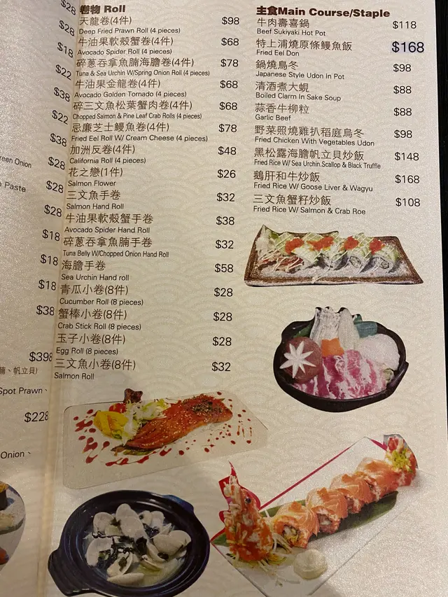 碎蔥吞拿魚腩海膽卷 $78 另加一