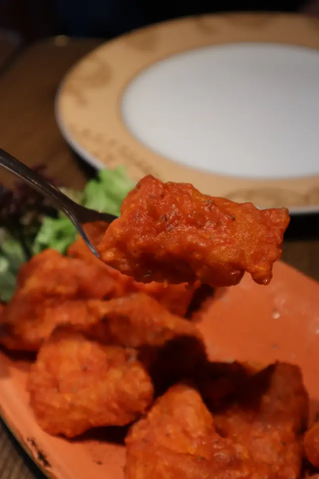 炸皮比較薄身,唔係硬脆𠴱種,食落有淡淡香料味,魚肉都幾嫩滑,我自己就另外再dip蒜蓉蝦嘅醬汁食,正!!