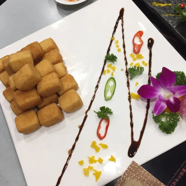 再來一份黃金豆腐, 約有二十多粒, 正正方方的豆腐, 單看下去已經透露內裡的雪白豆腐, 輕咬一半, 外皮脆加薄, 更沒有散開, 內裡又白又滑又堅固