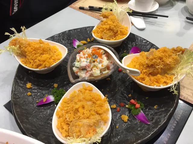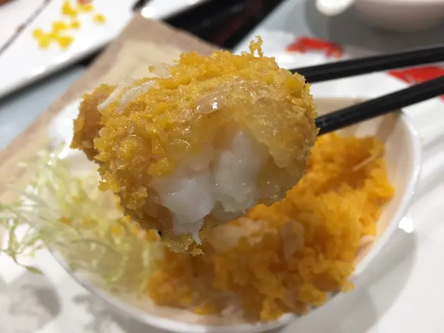 入座後, 店員先安排四隻黃金流沙蝦球, 一人一客, 黃金蛋黃碎鋪在蝦球上, 呈現金黃沙的感覺, 黃金內的蝦球非常厚肉, 新鮮爽彈