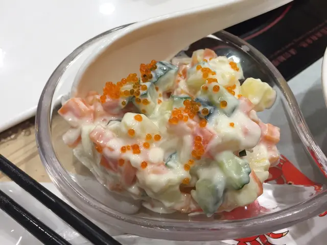 中間放著一小碟什果沙律, 酸甜夠凍好醒胃