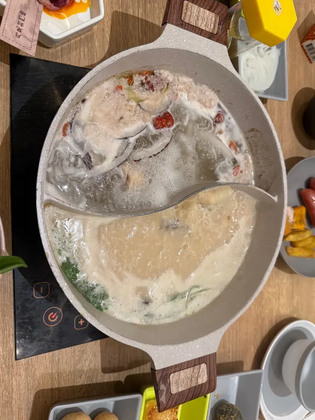 🌟 港式湯底代表包括芫荽皮蛋豬骨鍋,芫荽味道香到一個點‼️ 芫荽千祈唔好錯過😆另一款湯底揀左椰子雞湯(+$28),椰香陣陣,一樣咁正!