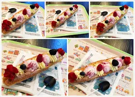 配料由新鮮生果'紅莓'黑莓,草莓'及雜莓乳酪雪糕配上泡芙同吃