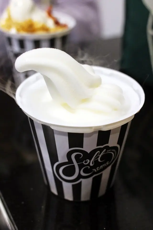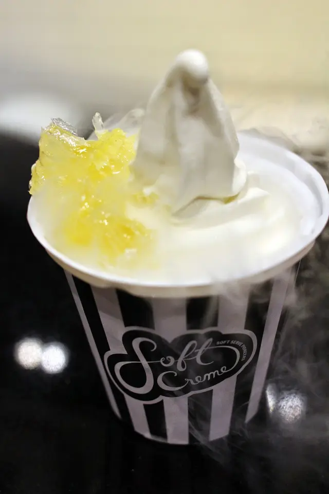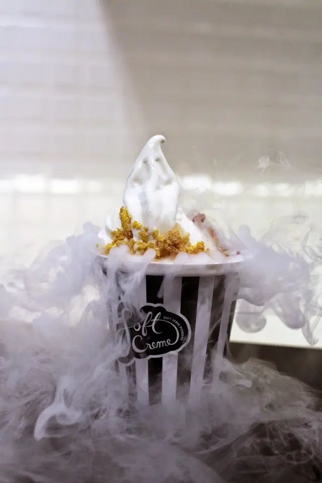 這款軟雪糕,也是一樣的煙霧彌漫,但質感卻有點不同,明顯少了奶味,似是雪葩多於雪糕,但吃進口中又比雪葩幼滑。它的特點是香檳味非常濃,真的很似在飲Moët,如果你是香檳迷,準會愛上這款口味。事實是,當日同行的酒鬼老公,簡直對此味一試傾心!