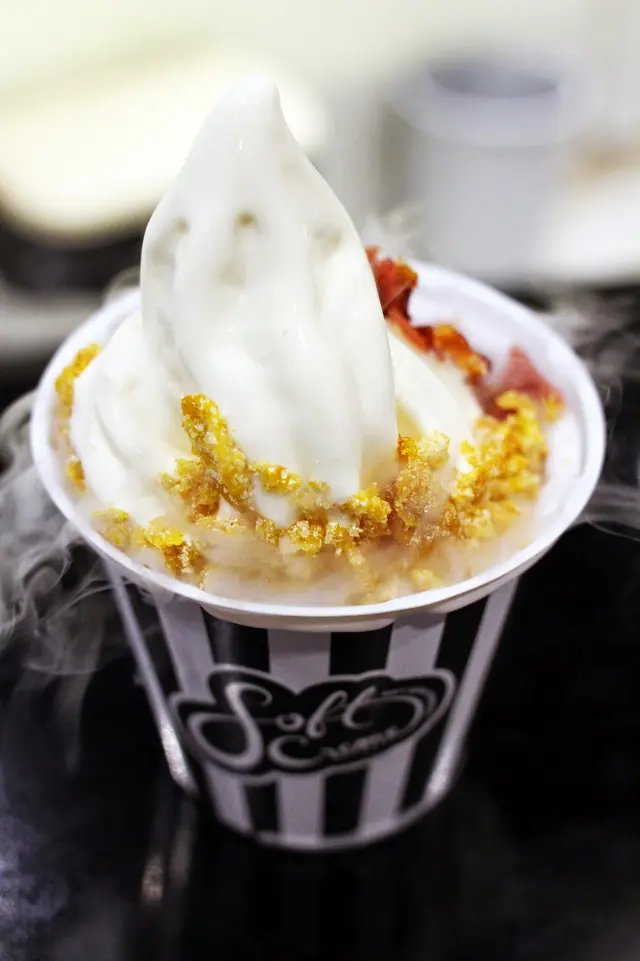 眼睛飽享娛樂,也輪到口腹享受了:煙肉粒鹹鹹香香,和Cereal Milk軟雪糕味道非常夾;而且軟雪糕質感軟滑,吃時夾雜著煙肉及殼粒的脆口,十分過癮,果然值得推介!