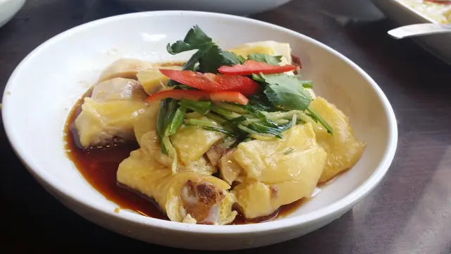 薑蔥霸皇王雞, 雞蒸到剛熟恰到好處, 肉質非常嫩滑, 還有一陣陣薑蔥油爆的味道, 令人吃得份外滋味。