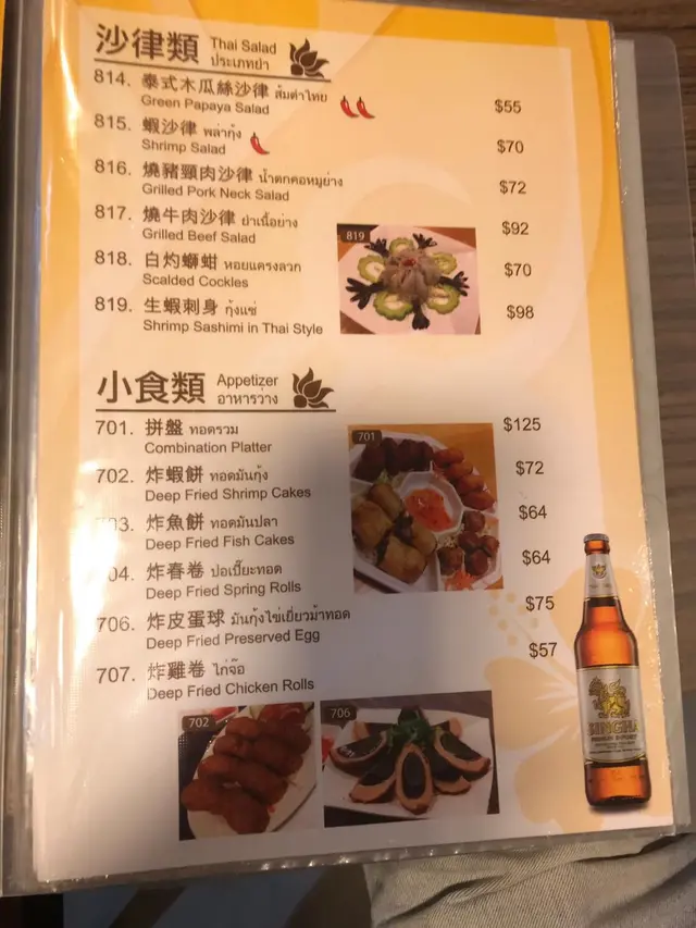 低食泰式美食 LauraHa等級32019-09-05140 瀏覽 關注 今晚去左九龍城泰象館食泰國菜,都有一段時間未食泰國菜。今晚食完真想去泰國一轉玩吓!一定唔少得小食拼盤$125,有炸蟹餅、炸魚餅、炸春捲和雞卷,我最喜歡食炸魚餅,因為這裡食先食出泰國風味。另外蟹餅都好吃,外脆內肉質微彈 。另外串燒三拼$77,都不可少,味道有牛肉、豬肉和雞肉,每款都有不同口感,加入串燒汁,味道更加特出美味。泰式攬角肉碎炒四季豆$70,我覺得要在外面先吃到欖角嘅味道,自己反屋企煮不到這種味道。所以我大都數會叫呢個菜。四季豆不太軟身,炒得剛好帶點爽口。天氣炎熱最好飲杯沙冰降溫。青檸沙冰$30/杯,酸酸地好醒胃,飲一啖熱氣全消。以上食評乃用戶個人意見 , 並不代表OpenRice之觀點。1分享低食泰式美食 泰象館 https://s.openrice.com/QrbT0CTOr00檢舉 張貼 評分4味道4環境5服務4衛生5抵食用餐日期2019-09-03用餐途徑堂食人均消費$144 (晚餐)