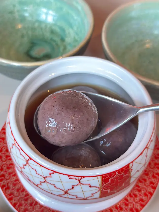 黑芝麻湯圓外皮柔軟,內餡香濃,餡料的甜度恰到好處。當你咬開的瞬間,芝麻的香氣瞬間彌漫,令人感到滿足。湯圓的質感滑嫩,讓人享受這道傳統甜品的美味,特別適合在寒冷的日子裡享用。