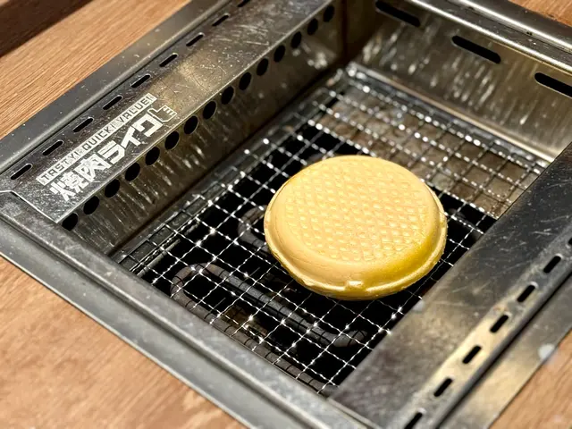 呢個天日鹽窩夫雪糕為我哋呢日餐點劃上完美句號。甜品可以即食或輕輕燒香後食,我哋每邊以1度火力燒咗近一分鐘,內裏天藍色嘅鹽味雪糕已溶化少少,外層窩夫徵脆和口,味道清新,值得一試。