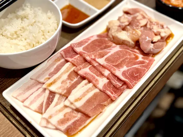 而燒肉LIKE精心挑選嘅部位五花腩,瘦肉同油脂比例恰好,個人非常推薦將肉片表面燒至微焦,咁樣先會咬落外面焦脆,內裏滑嫩多汁。呢種豬肉有豐富油香,配以北海道十勝豚汁,每一啖都有濃郁肉香!
