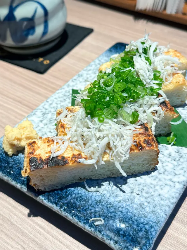 ✨栃尾油炸豆腐伴魩仔魚 - 豆腐炸得外脆內軟,配埋香脆嘅魩仔魚,口感幾豐富,個frd話可以試下自己喺屋企整