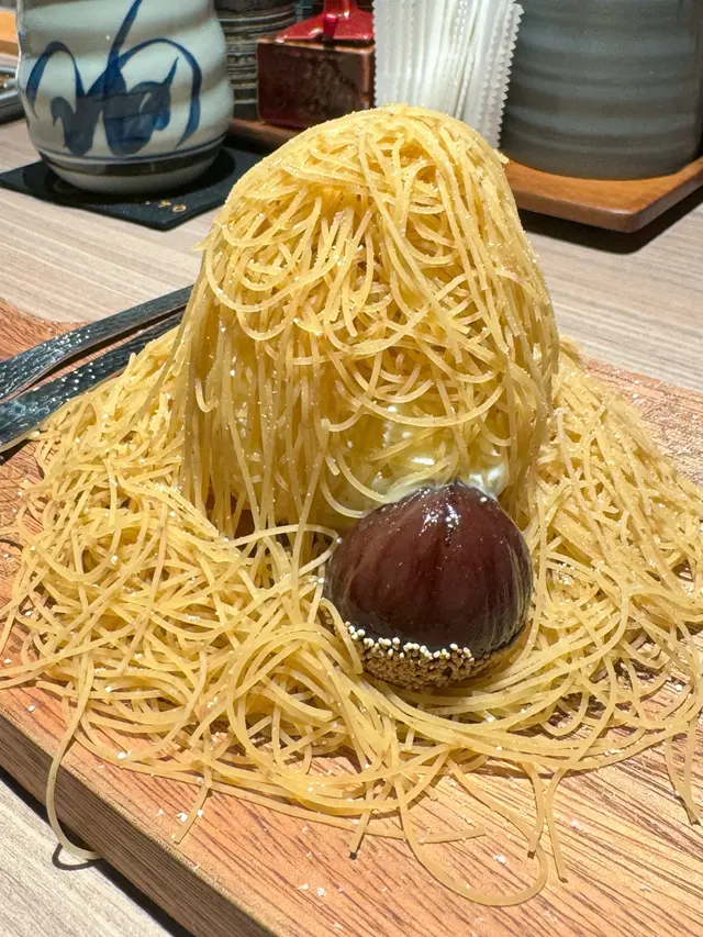 自家製法式栗子蛋糕🌰- 個師傅係喺我哋面前整,見到個底部係比較薄嘅蛋糕,加上雪糕,再淋上栗子蓉,整體黎講唔會好甜,可以一試~