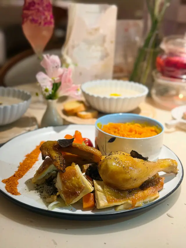 🌷黑松露香草烤三黃雞🐓:好香黑松露味,三黃雞外皮烤到很香脆。