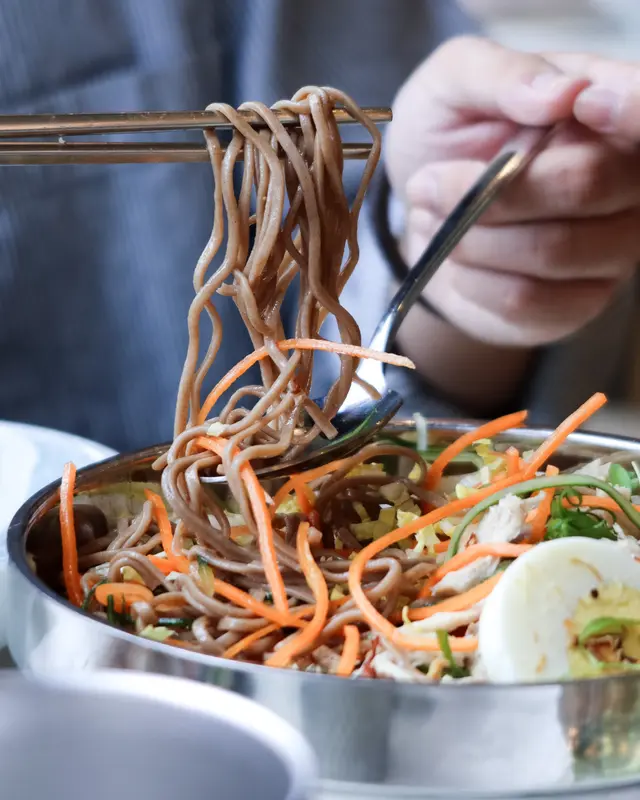 另外點左清少少嘅冷手撕雞蕎麥麵,賣相極之吸引,而且非常足料,有蛋、蔥粒、野菜、青瓜、蘿蔔等!麵更配有檸檬辣椒醬油作調味,微辣得黎又開胃,絕對係愛食辣人士嘅午餐之選!