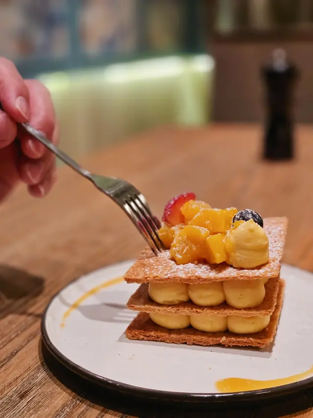 這份芒果拿破崙層次豐富,賣相精緻,