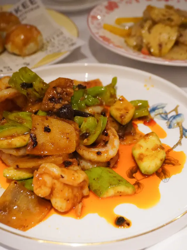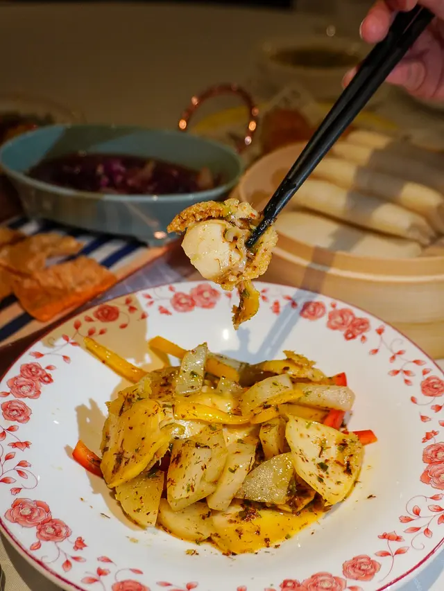 以雲南特產食材鮮天麻同皺皮椒入饌,鮮天麻明目降血糖等功效,健康養生;皺皮椒食落微辣,口感爽脆,連同大大粒的蝦球一齊炒,夠鮮、夠香、夠辣🔥