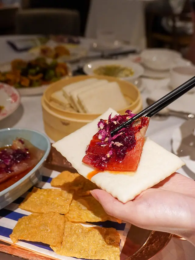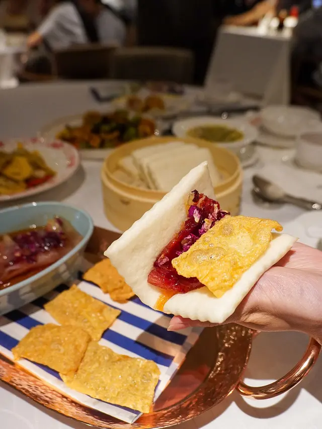 甜品壓軸出場😍雲南高原玫瑰花醬配搭檸檬汁、雲腿蓉,外皮鬆脆酥化,餡料酸甜,食落有滿滿花香🥰🌹