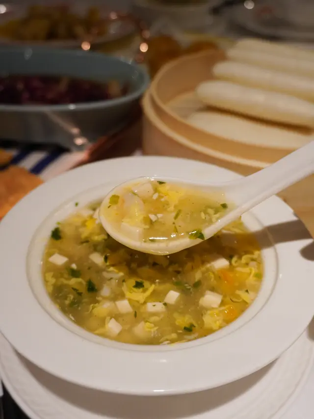 呢道酸湯羹好有驚喜!用上雲南雞頭米,即係芡實,形狀似珍珠,口感軟糯又有嚼勁,湯入面仲有鮮蝦粒、豆腐同雲南金耳,味道酸酸地好開胃🥄