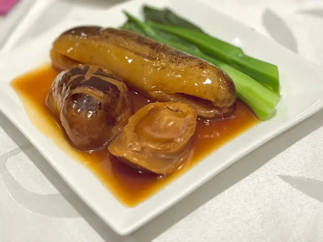 跟住上嚟嘅蝦球同鮑魚都係重頭戲,蝦球新鮮彈牙,鮑魚入口軟腍香濃,配上清甜嘅菜心,簡簡單單都係一個經典配搭。🦐